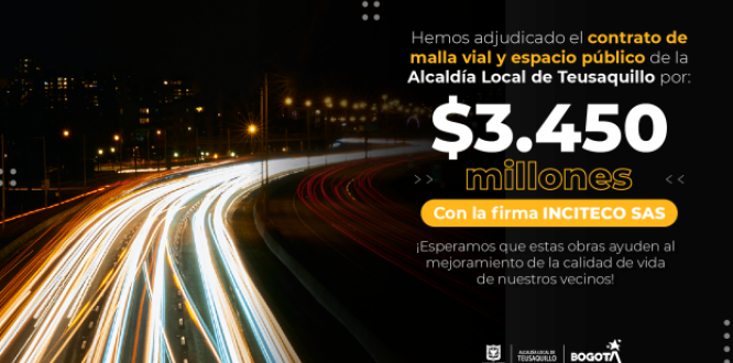 En tiempo récord, la Alcaldía Local de Teusaquillo adjudicó el contrato de obra “Teusaquillo mejor con la malla vial y espacio público” por valor de $ 3.450.482.978 de pesos.