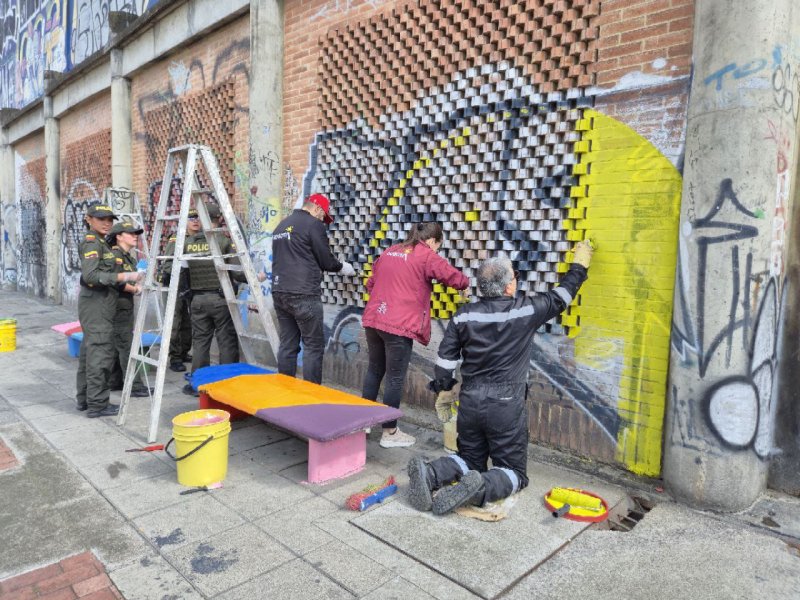 Bogotá, 08 de enero de 2026- En el marco de la estrategia #PorUn2026MásOrdenado, la Alcaldía Local de Teusaquillo adelantó una jornada de embellecimiento urbano y muralismo en el corredor de la calle 26, entre las carreras 15 y 18, en articulación con la Secretaría de Seguridad y la Policía Comunitaria deTeuaquillo.